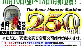 インフォメーション 世界超超超最速250km/h登板します!!‟World super-super-super fastest 250km/h will take the mound!!‟【ENG CHT KOR JPN】 驚異のスピードを誇る世界超³最速250km/hを登板します!!10月10日(金)~13日(月祝)に登板します!!世界最速のスピードを体験してみてください!!Experience the astonishing speed of the wo...全文はクリック 2025.09.30 イベント情報インフォメーションホットな情報