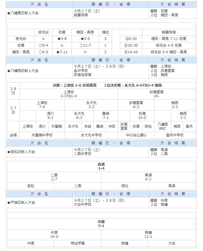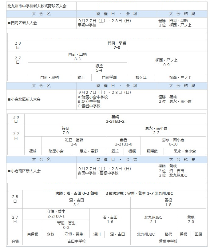 2025 北九州市中学校新人軟式野球 区大会の結果です。