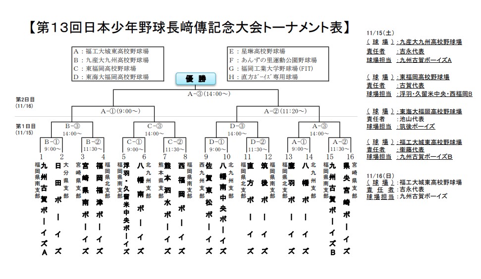 第13回日本少年野球長﨑傳記念大会の組み合わせです。