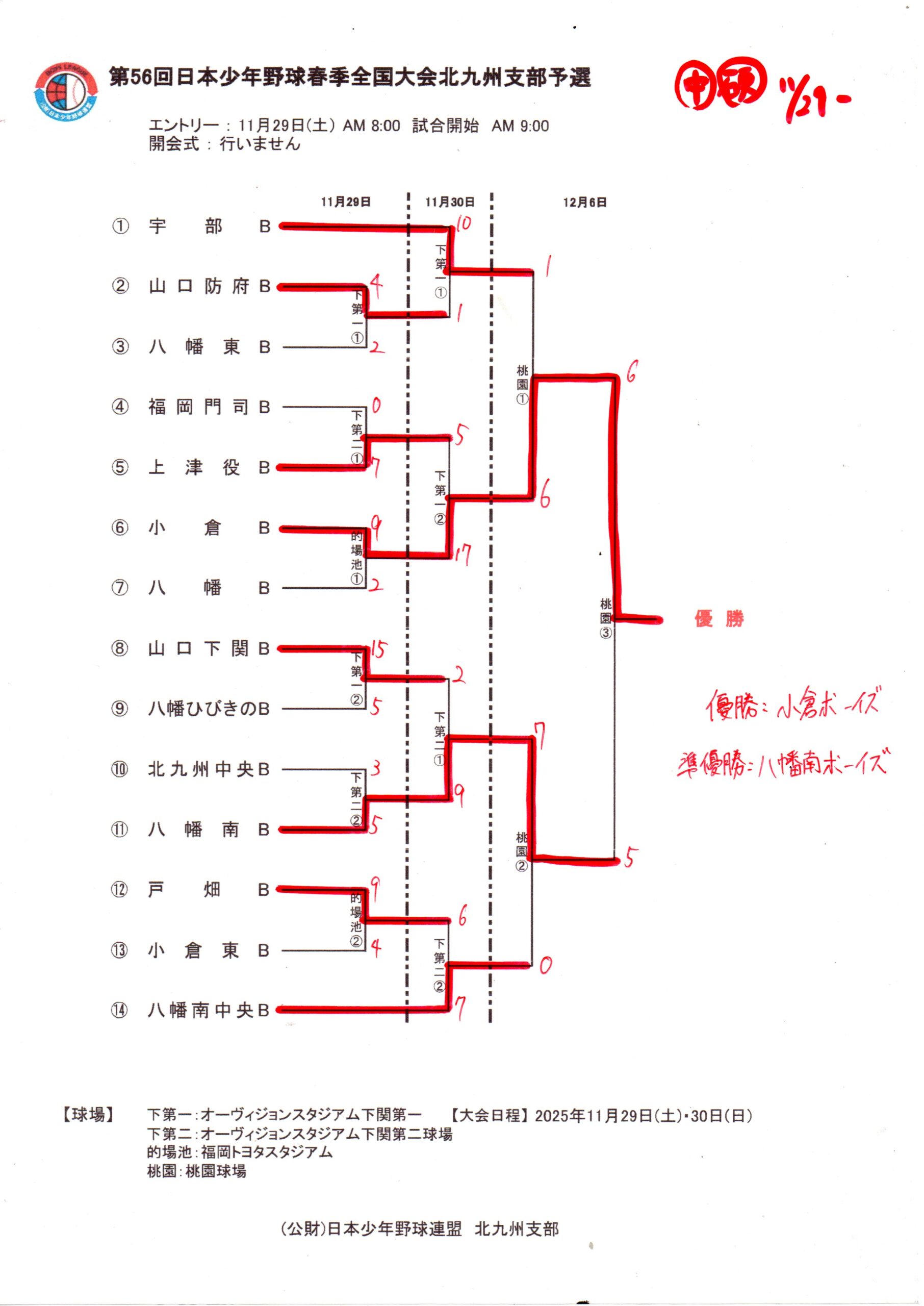 優勝は小倉ボーイズ、準優勝は八幡南ボーイズです!