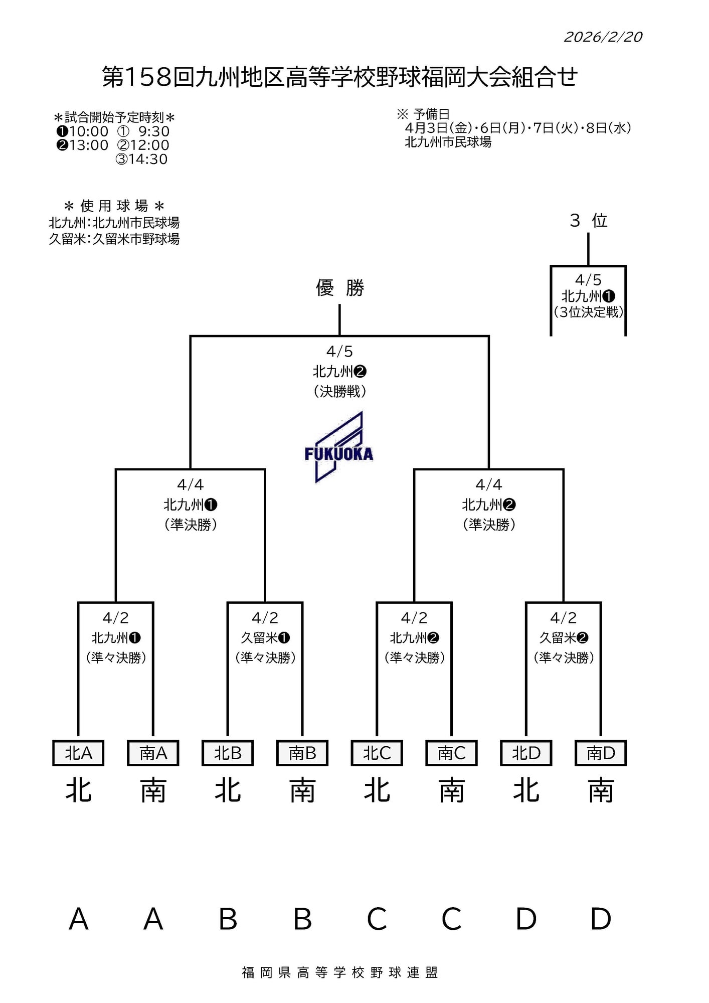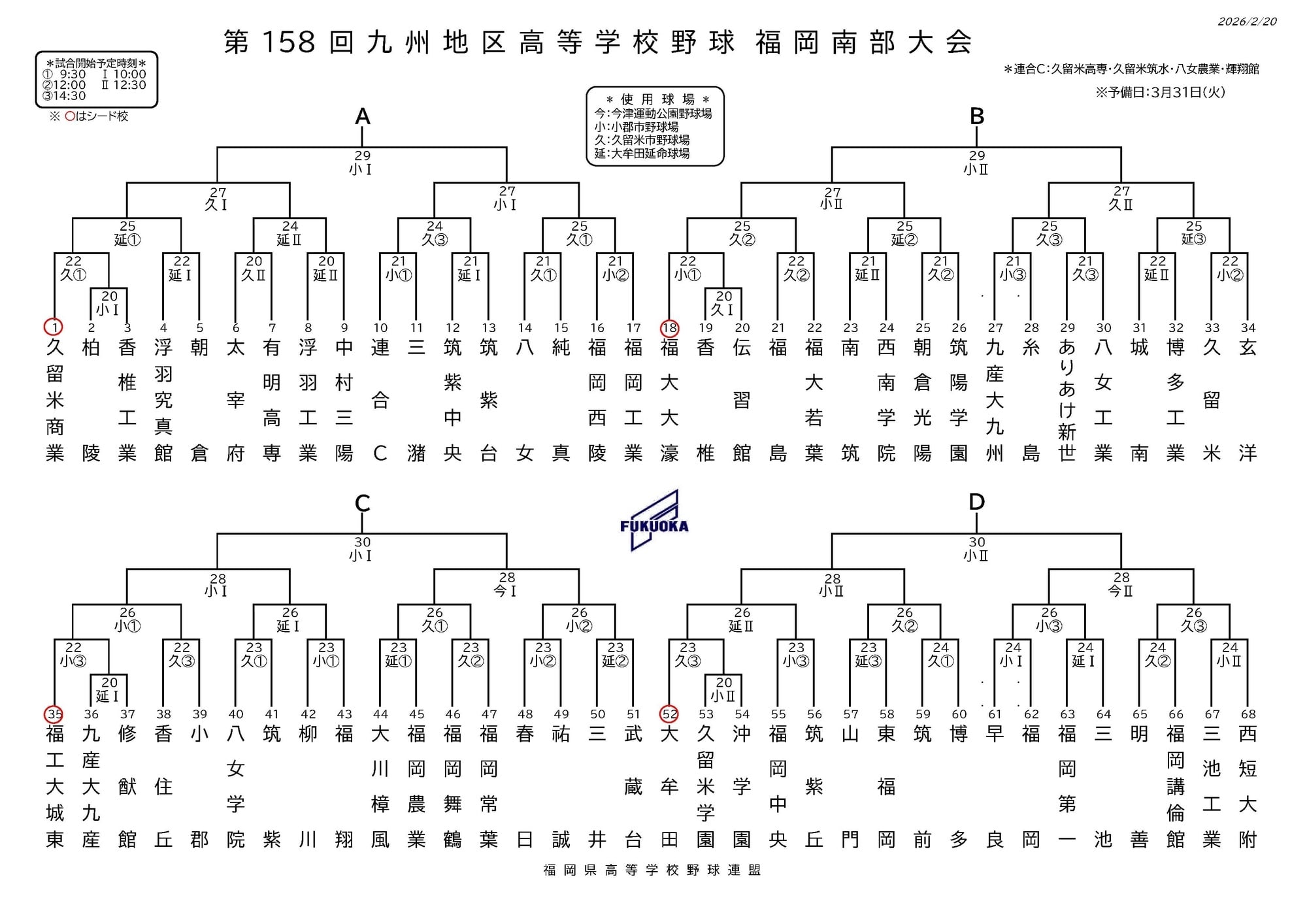 第158回九州地区高等学校野球福岡県大会の組み合わせです!