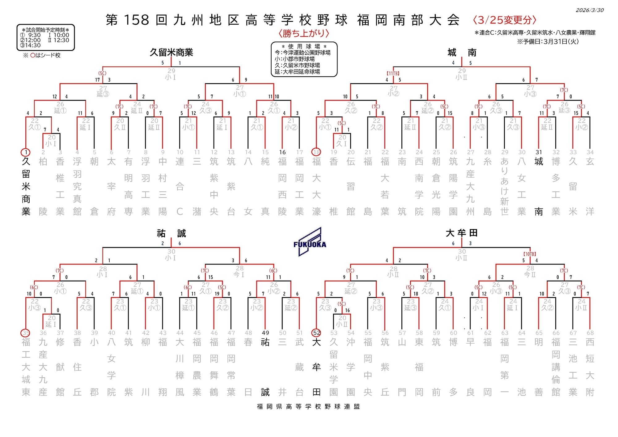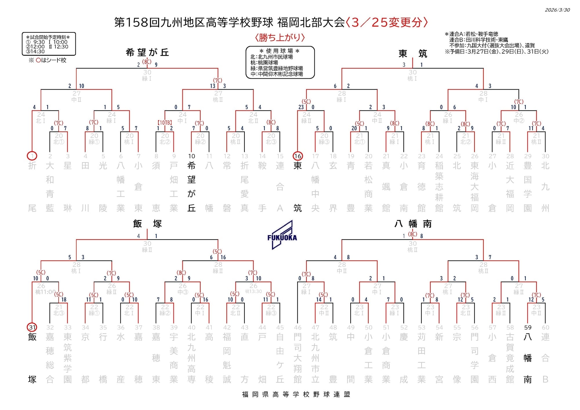 第158回九州地区高等学校野球福岡県大会の途中結果です!