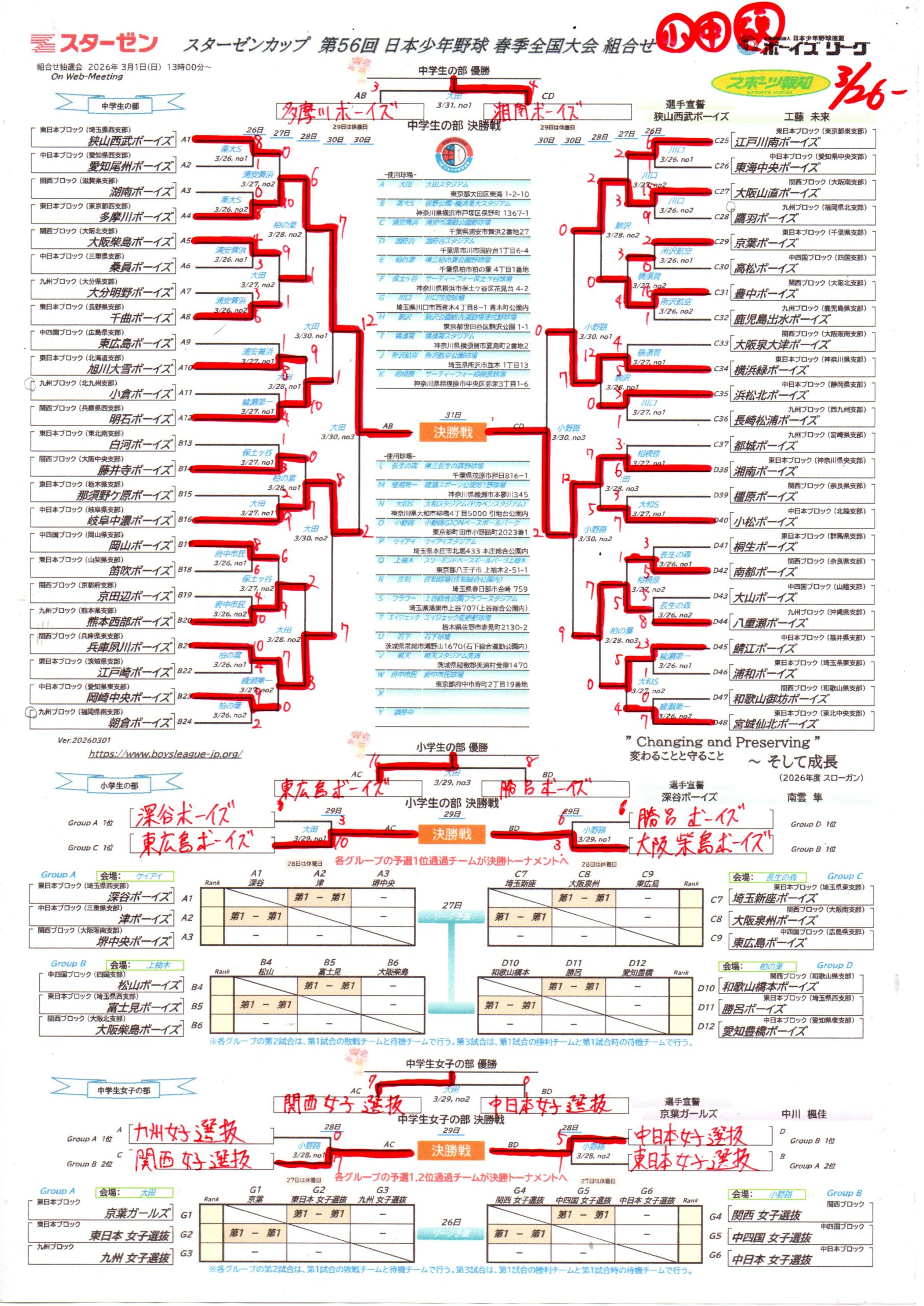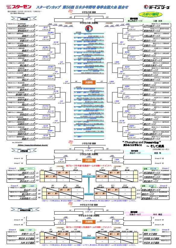 スターゼンカップ第56回日本少年野球春季全国大会の組み合わせです。