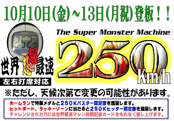 驚異のスピードを誇る世界超³最速250km/hを登板します!!