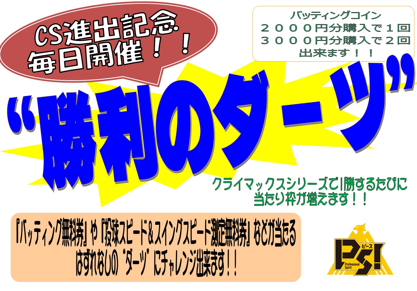 今回は「クライマックス進出記念ダーツ」として、勝ち負け関係なく毎日チャレンジOK!