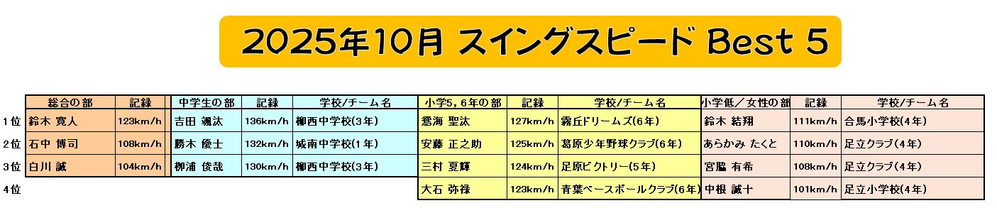 2025년10월 월간 스윙 속도 랭킹 결과입니다.