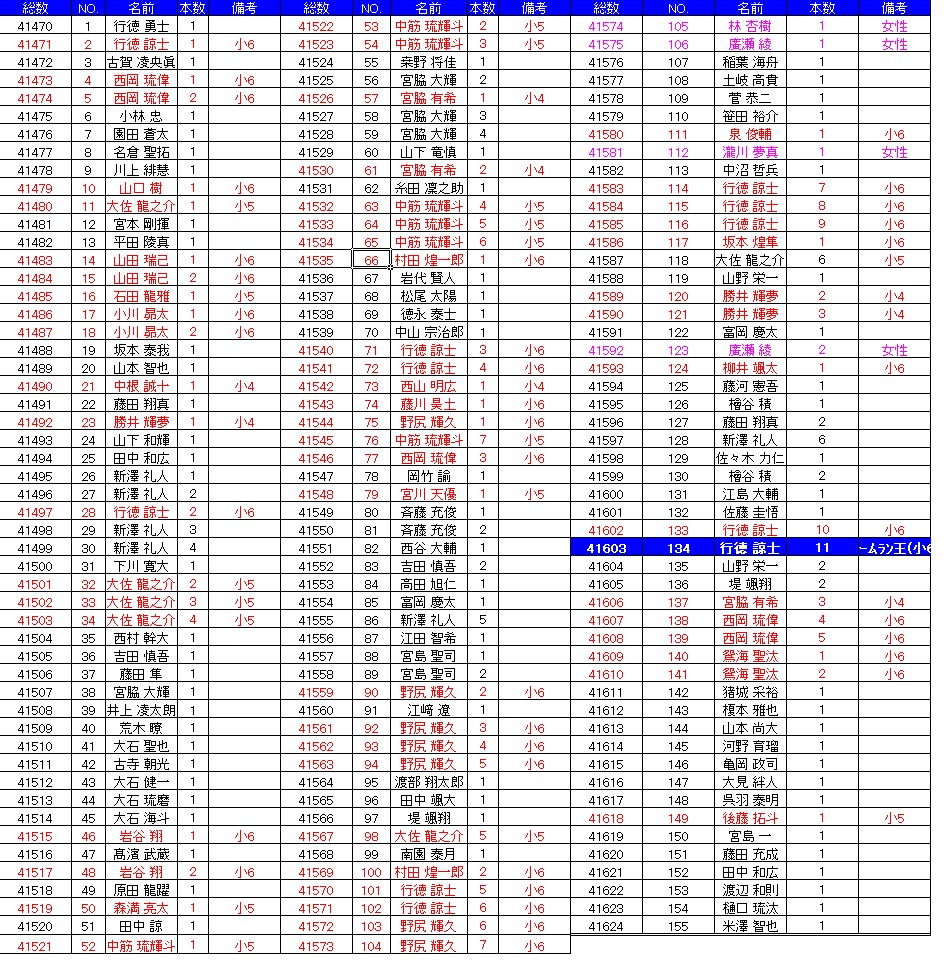 月間ホームラン王はMBC教室に通っている行徳諒士くん(小学6年生)です。
