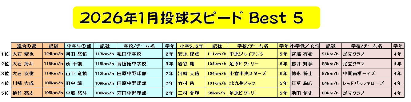 2026년1월의 월간 투구 속도 랭킹 결과입니다.