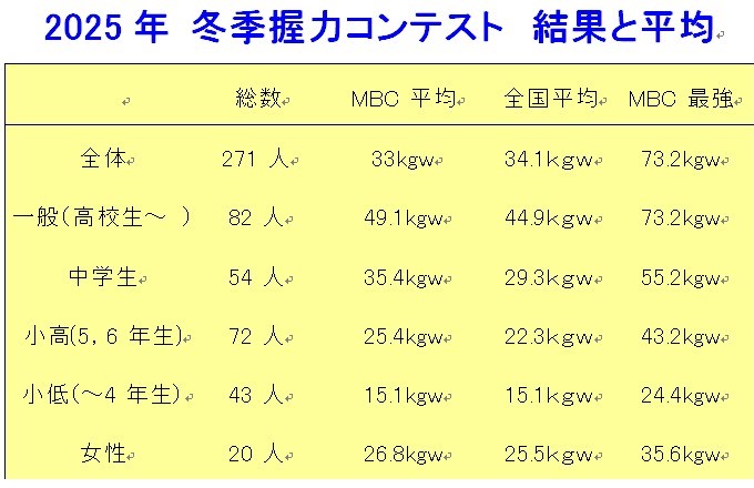 2025年冬季握力コンテストランキングの結果です。
