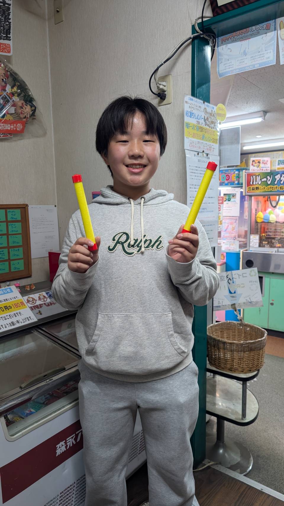 When you purchase batting coins worth 2,000 yen or more, you will receive a ticket. If you successfully catch all four flying sticks, you will win one free batting game!