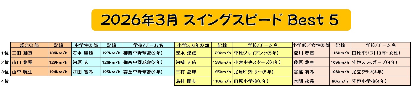 ★3月度スイングスピード王