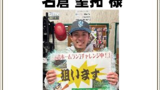 水巻町にお住まいの名倉 聖拓様が4番打席110キロのマシンから右側のホームランボードに当てられ、見事予告ホームランを達成しました!おめでとうございます!予告ホームランイベントは2月23日(月祝)までのイベントとなっておりますので、皆さんもチ...全文はクリック
