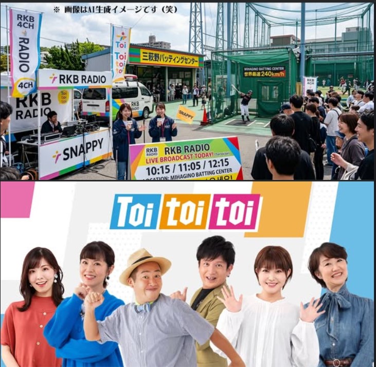 RKB Radio’s “Toi toi toi” is broadcasting live today from Mihagino Batting Center with the Snappy team! There will be three segments at: