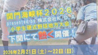 2月21日(土)~22日(日)に関門海峡杯2026(小学生硬式野球地方大会)が下関で開催されます!入場料、観覧料無料!!大会場所はポスターをご覧ください。※雨天の場合、開会式及びレクリエーションを体育館にて予定本大会は日本リトルリーグ野球協...全文はクリック